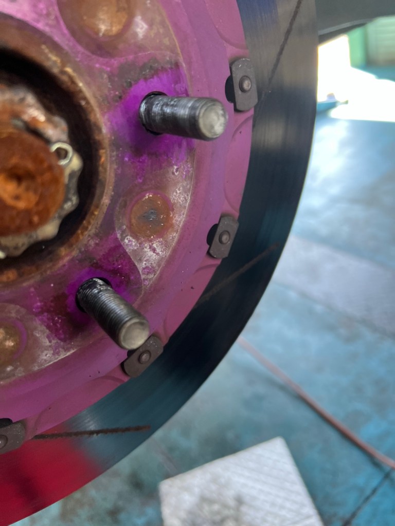 リアのボルトはインドラムをバラさないといけないのでついでにサイドブレーキの修理