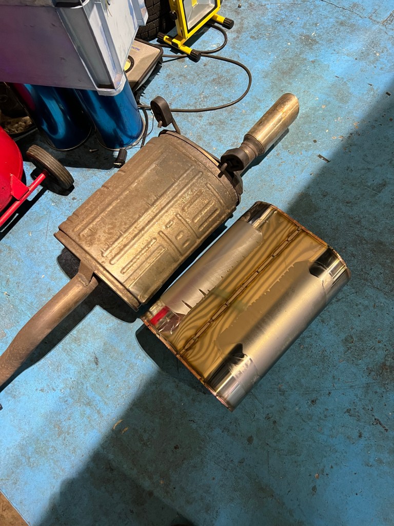 パイプは曲がりくねり、旧車特有の‘ホーシング上’マフラーのため溶接箇所が多い事