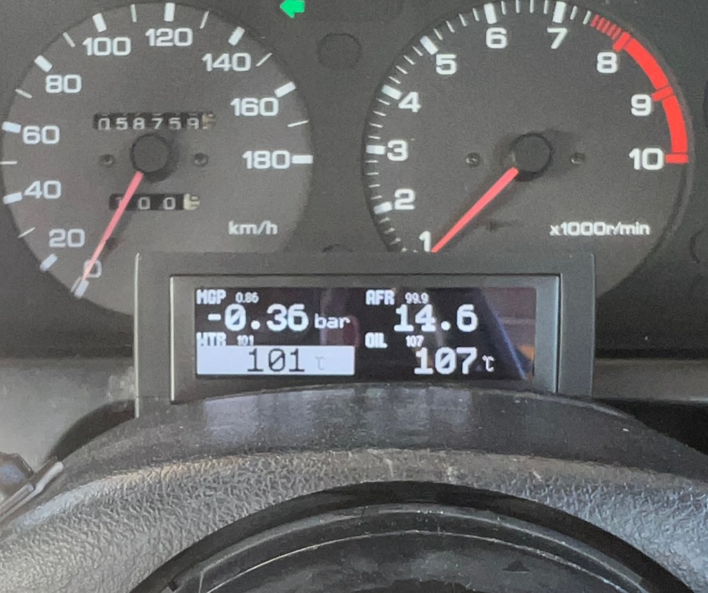 CANメーターも配線4本(5V、GND、CAN HI、CAN LO)で繋がりフルコンの内部を表示できる。