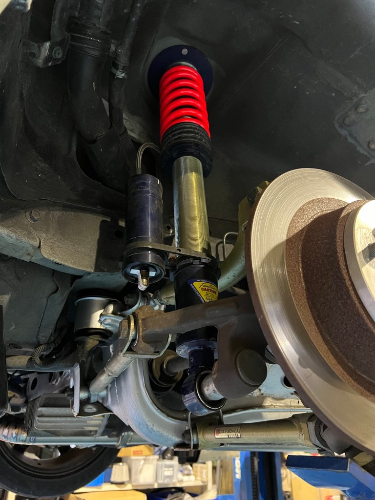 フロントのストラットが特殊形状なので他とはちょっと違うセッティングの出し方をしないといけない。