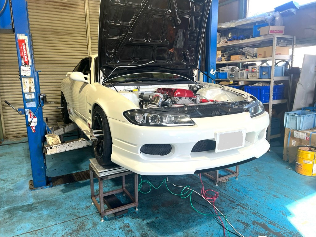 お手製の‘車両台’の平行位置を毎回合わせて乗っける(写真はウチのシルビア)