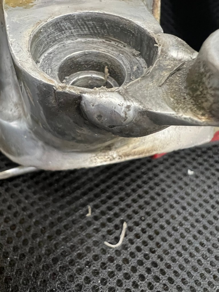 インジェクターが刺さる部分が落としたのか割れたモノを溶接で修理してある。