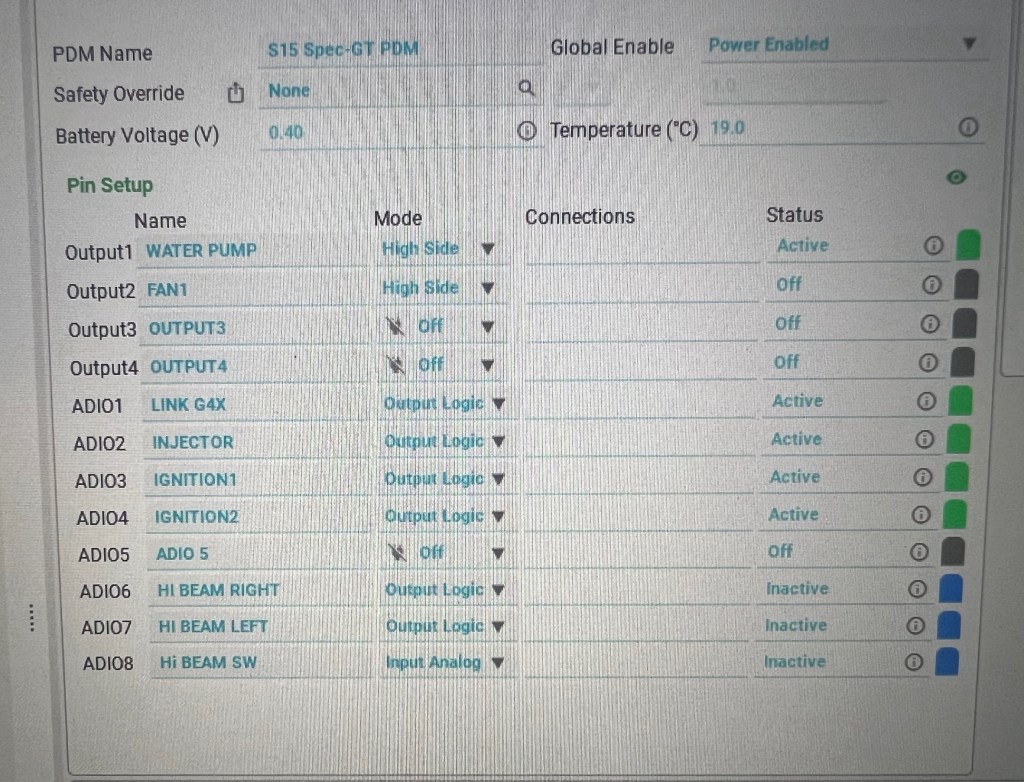 そのためにPDMの大電流4チャンネルに繋いであったインジェクターと点火をPDMの低電流(MAX8A)に移動