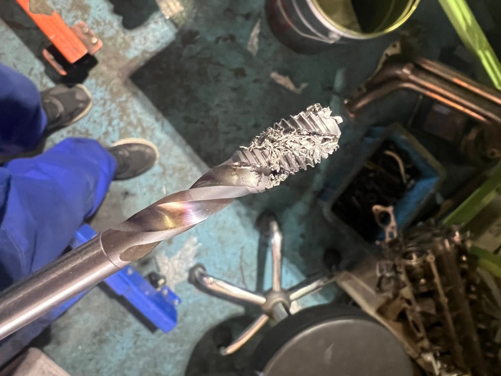 コレは純正のボルトのトルク管理がちゃんとできていない、そこでブロック加工出す前にすべてのネジを切り直しキチンとトルクが掛かるように修正