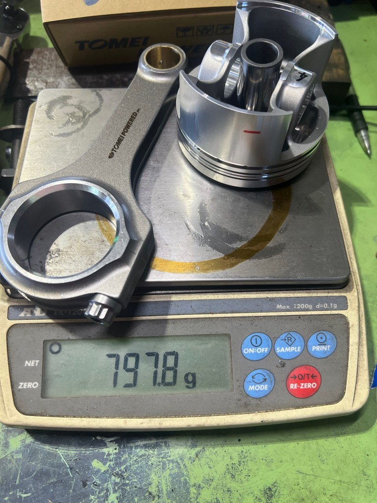 797.8g±0.1gに収まった…ノーマルから気筒あたり80g減