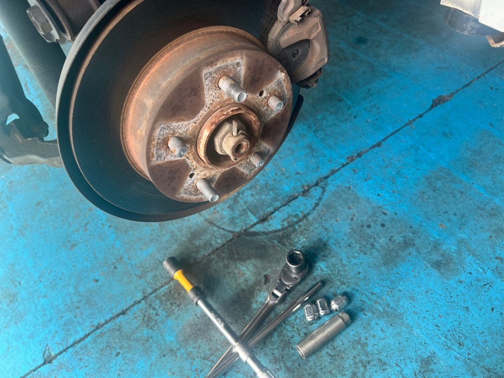 と思ったら何か周り方が変、十字レンチからロングシャフトに変えてやっと回る…ボキっ。。