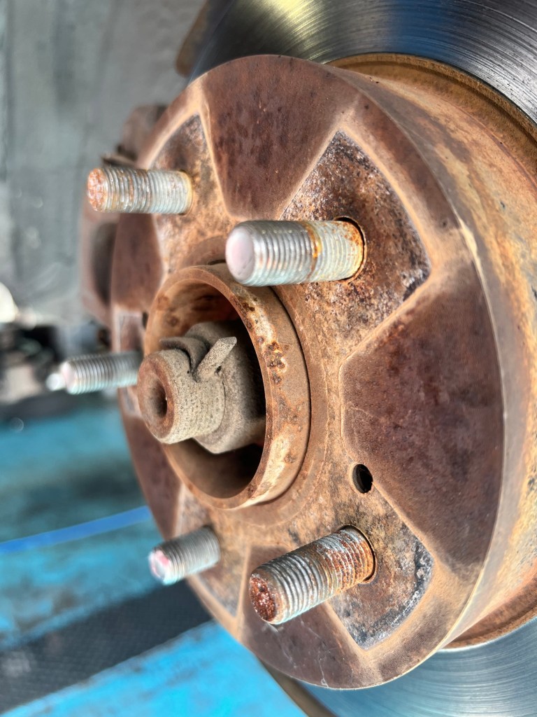 下側に映っているボルトは普通に緩んだもののネジにが掛かっていた場所にサビ、先端にもサビ