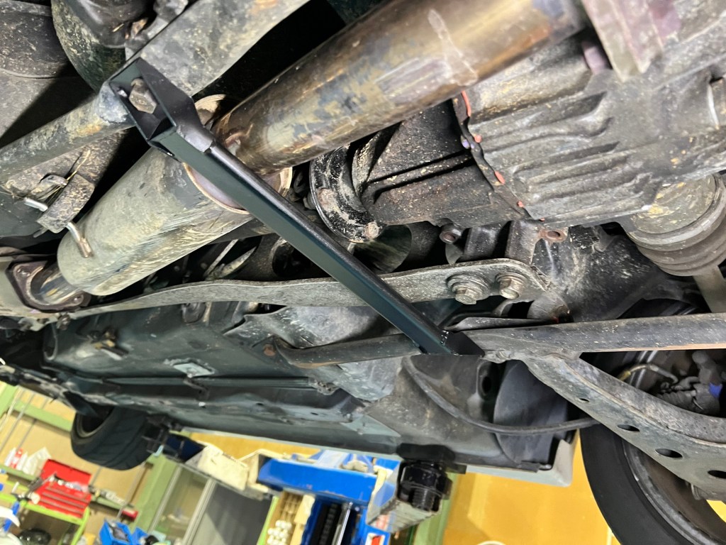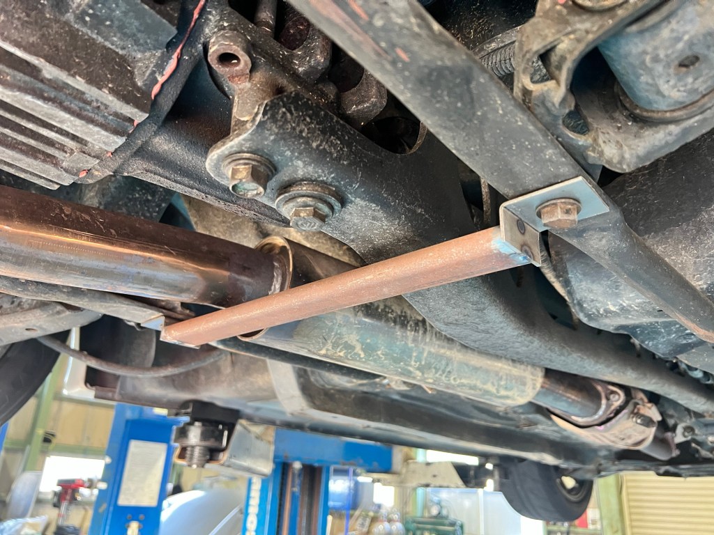 こんな感じでとのご要望、これならパイプか締めて簡単にいけるなと思ったら…パイプだとマフラーやらメンバーに当たる💧