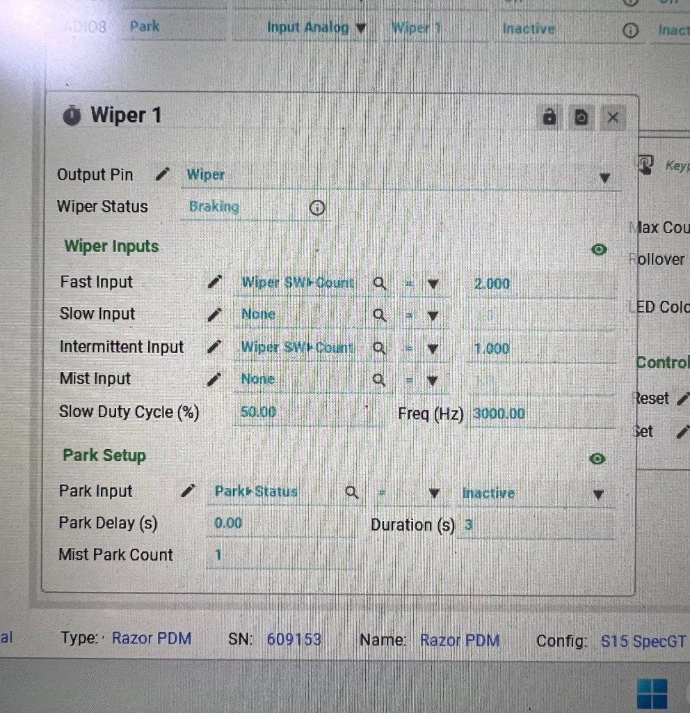 つい最近のファームで‘ワイパーコントロール’が実走されたLINK RAZOR PDM、以前の状態でなんとかできんか?と四苦八苦したがパークコントロールが上手く機能せず仕方なくワイパーリレーを増設して使用していた。
