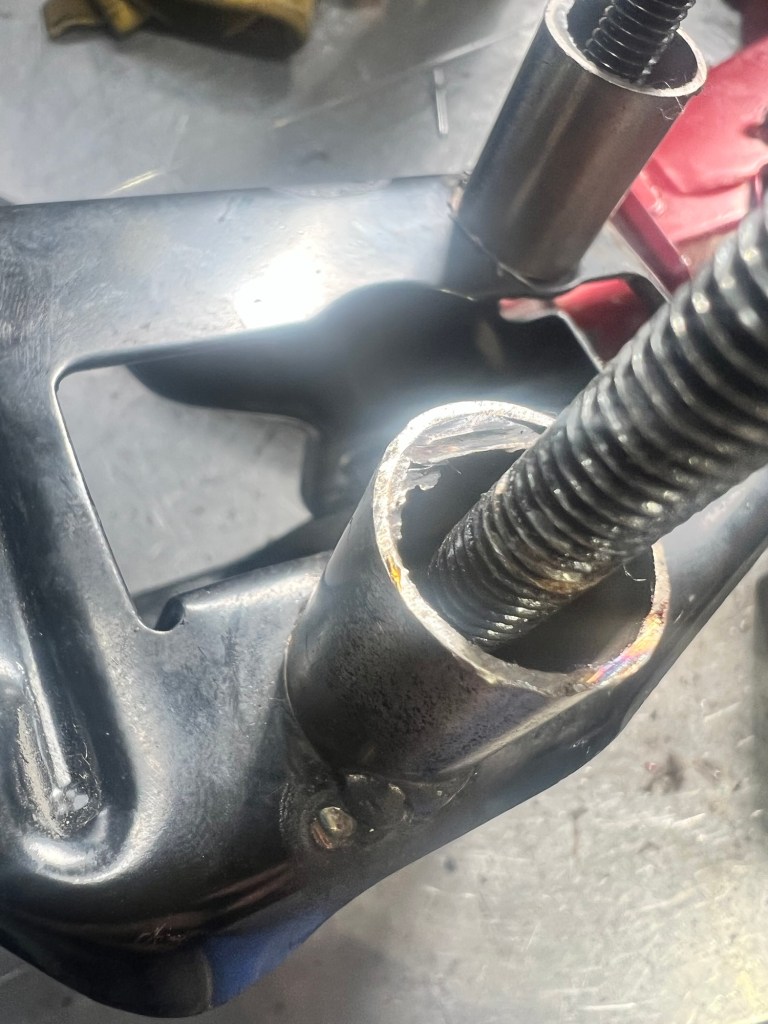 この部分は買った時に積み替え車だったと聞いているから某有名店の作業では無いものの、クラッチ踏んだら明らかにおかしいことは気づくはず。