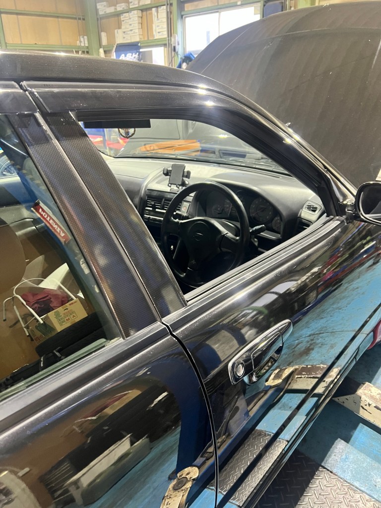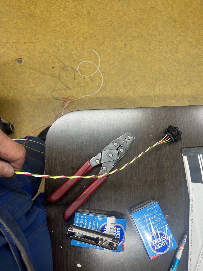 この車、あちこちでいろいろな作業がされている、ハーネス加工した感じもある。