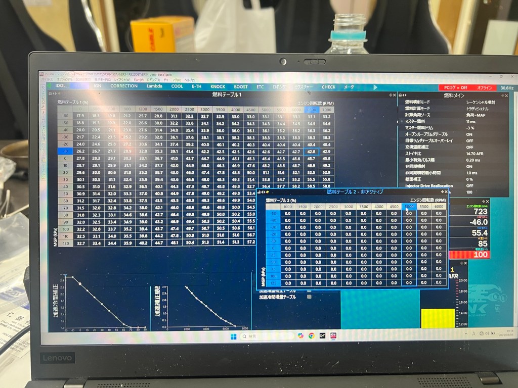 この車は可変カムなので、NVCSのオンの時はオーバーレイテーブルで制御、デュアルテーブルはめんどくさいけれどこの一手間で気持ちよく走り燃費も良い状態に持っていきます。