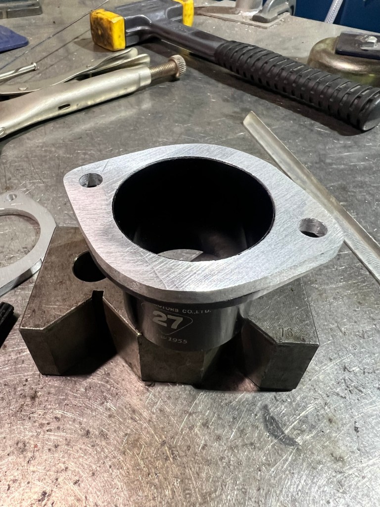 フランジを切り出してアダプタを製作。