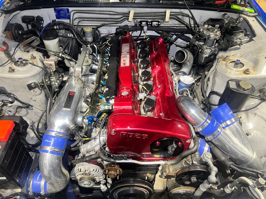 軽く走らせたS15は油温がやばいレベル…オーナーさんと相談して急遽オイルクーラーをワンオフで設置する事となった。