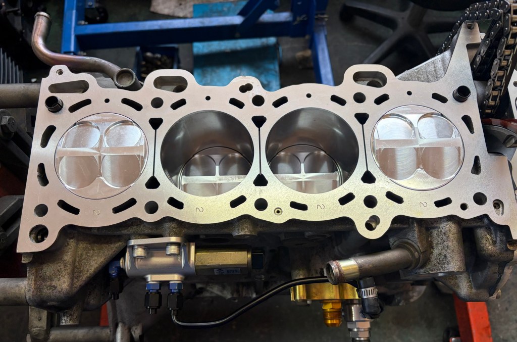 腰下はキャリロのハイコンプピストンを使い実測で圧縮を12.3:1までアップ